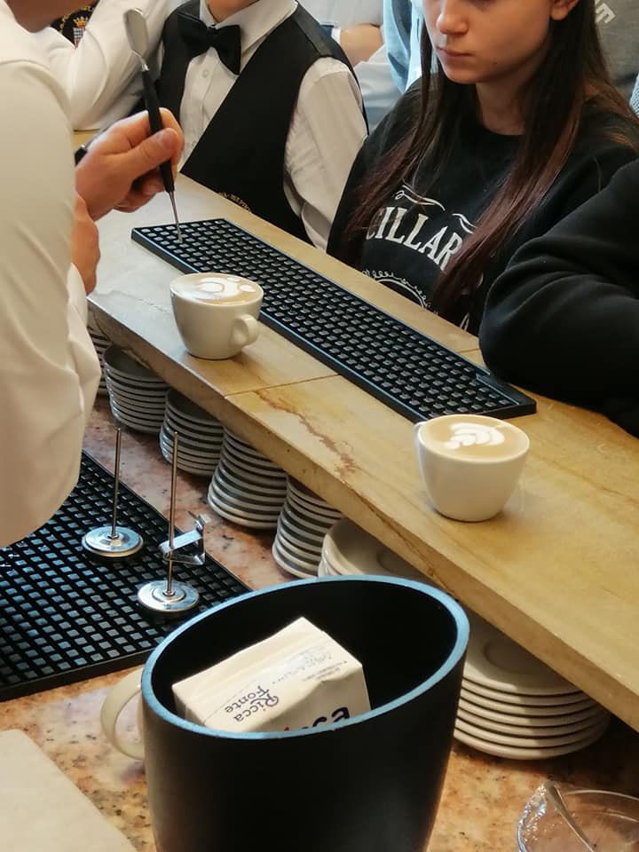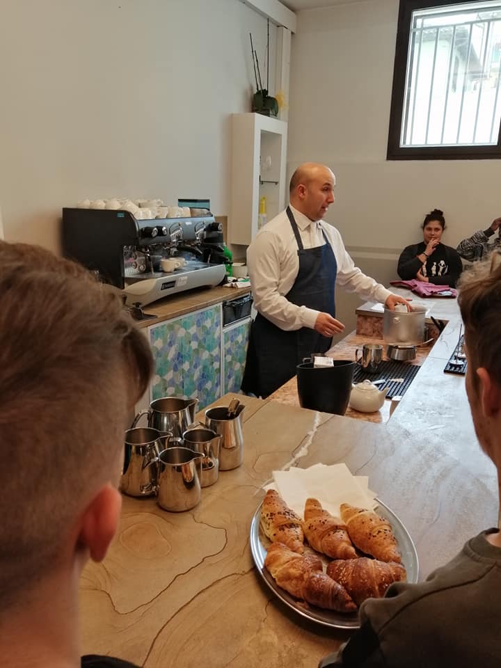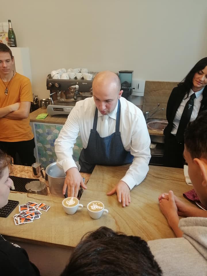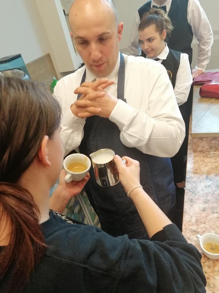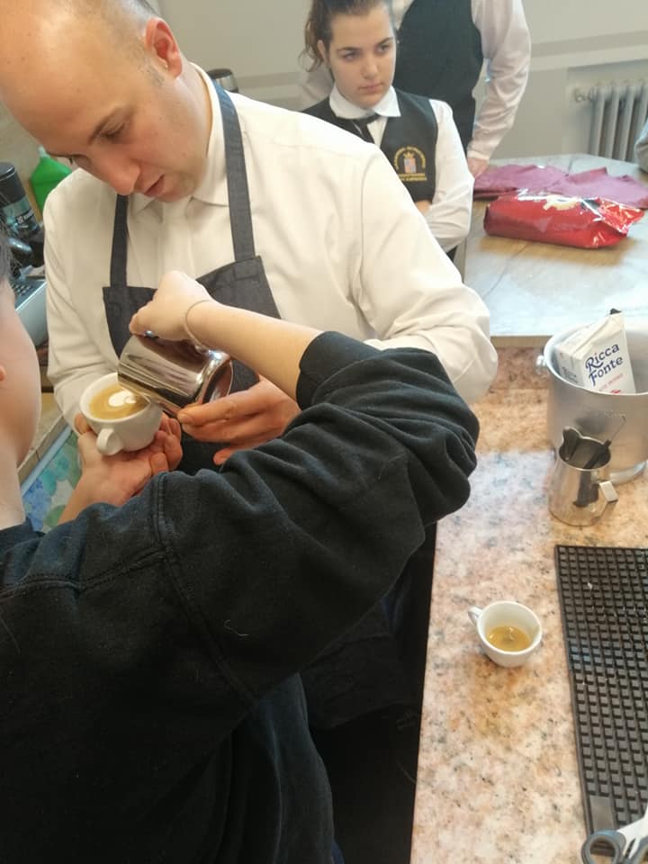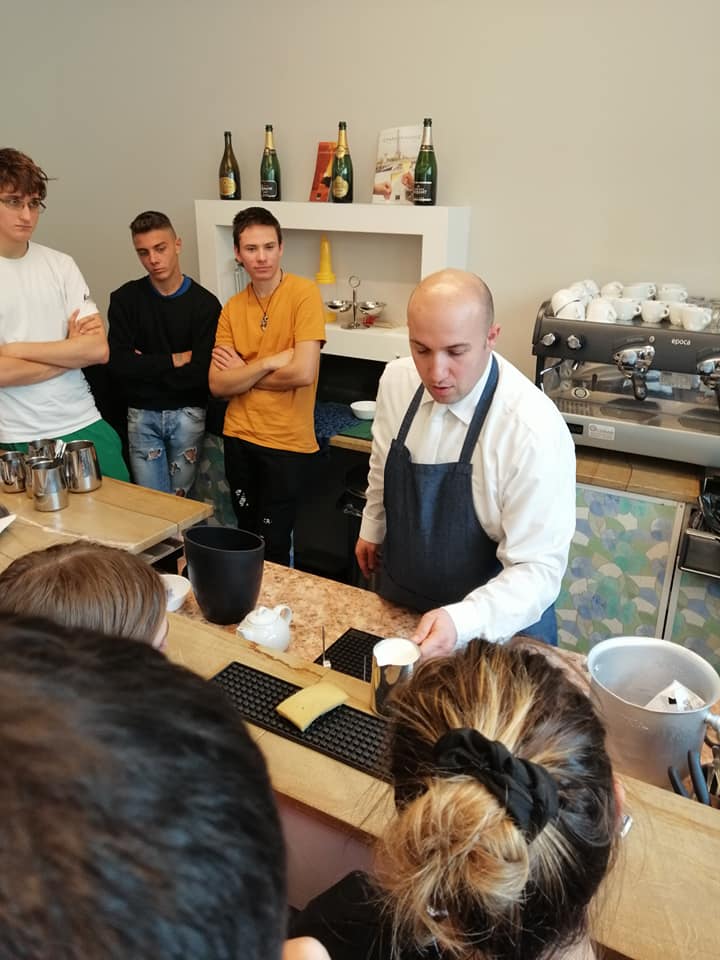 Lunedì 28 Ottobre, in tardi mattinata, si è svolto l’incontro con il trainer di Latte Art Giuseppe Campanella (AIBM Project) e gli studenti dell’Istituto di Istruzione Superiore “Giovanni Penna” (Baluardo Montebello, 1, San Damiano d’Asti). Durante l’incontro si è parlato di Latte art e caffetteria, subito seguito da alcuni esempi pratici.