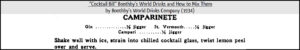 Quindi il drink che oggi comunemente chiamiamo Negroni esisteva già in un libro americano con il proprio nome nel 1934. Poiché Campari è un grand bitter, il Camparinete è naturalmente un drink americano: uno sling amaro, altrimenti noto come cocktail .