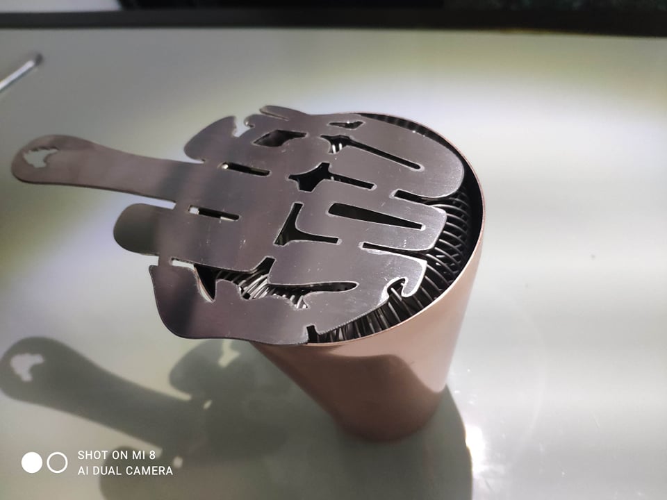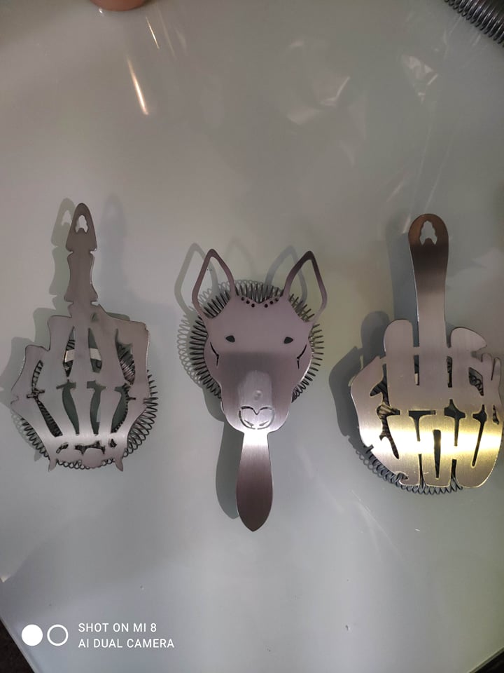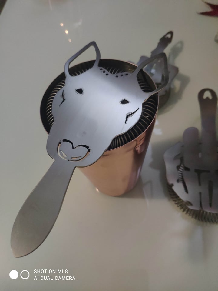 “Successivamente”, racconta l’autore, “ho cercato di produrre altre due tipologie di prodotto che come forma si potevano adattare ad una tipologia di strainer. Attualmente vi sono produzione anche due tipologie di bar mat in acciaio riportanti il mio marchio registrato, che è BardoG . “